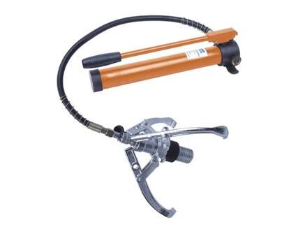 液壓拉馬大體分為兩部分,即使用人力操作的操作泵,它可以提供液壓,以及進行拔輪的拉馬。液壓拉馬卸掉輪胎的過程,就是先將拉馬在輪胎上固定,然后搬動液壓泵的手柄,液壓拉馬具有了拉力,便可以將輪胎拔掉。